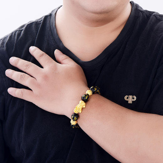 中国黄金t895幸运刺青招财貔貅黄金手链男士款本命年足金转运珠六字