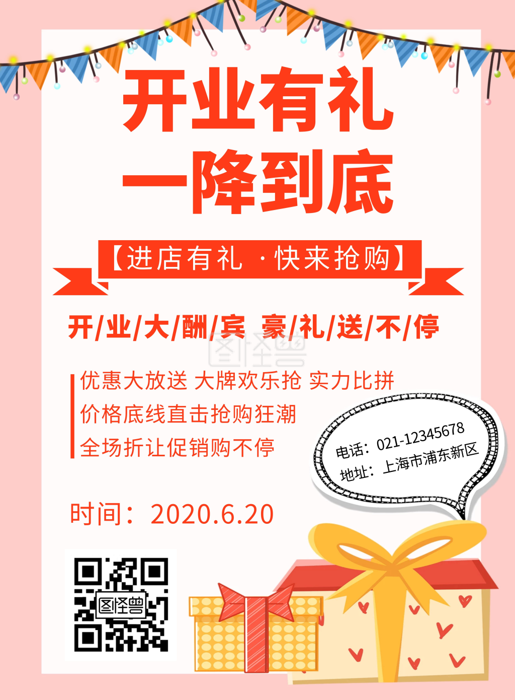 橘色开业有礼创意简约活动宣传竖版海报
