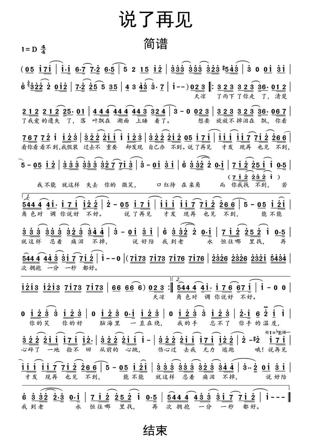 说了再见简谱视唱第1页