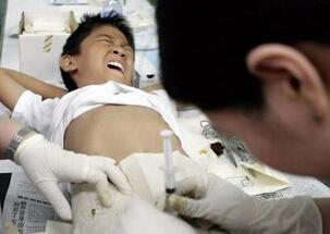 4日,印尼棉兰(medan)的一个集体割礼活动中,一个男孩在医生为他做
