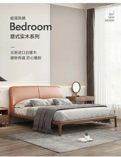 北欧真皮床白蜡木实木家具现代简约小户型1