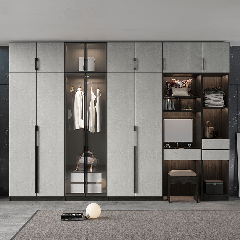 柜子衣柜家用卧室现代简约轻奢衣帽间定制玻璃组合转角衣橱小户型