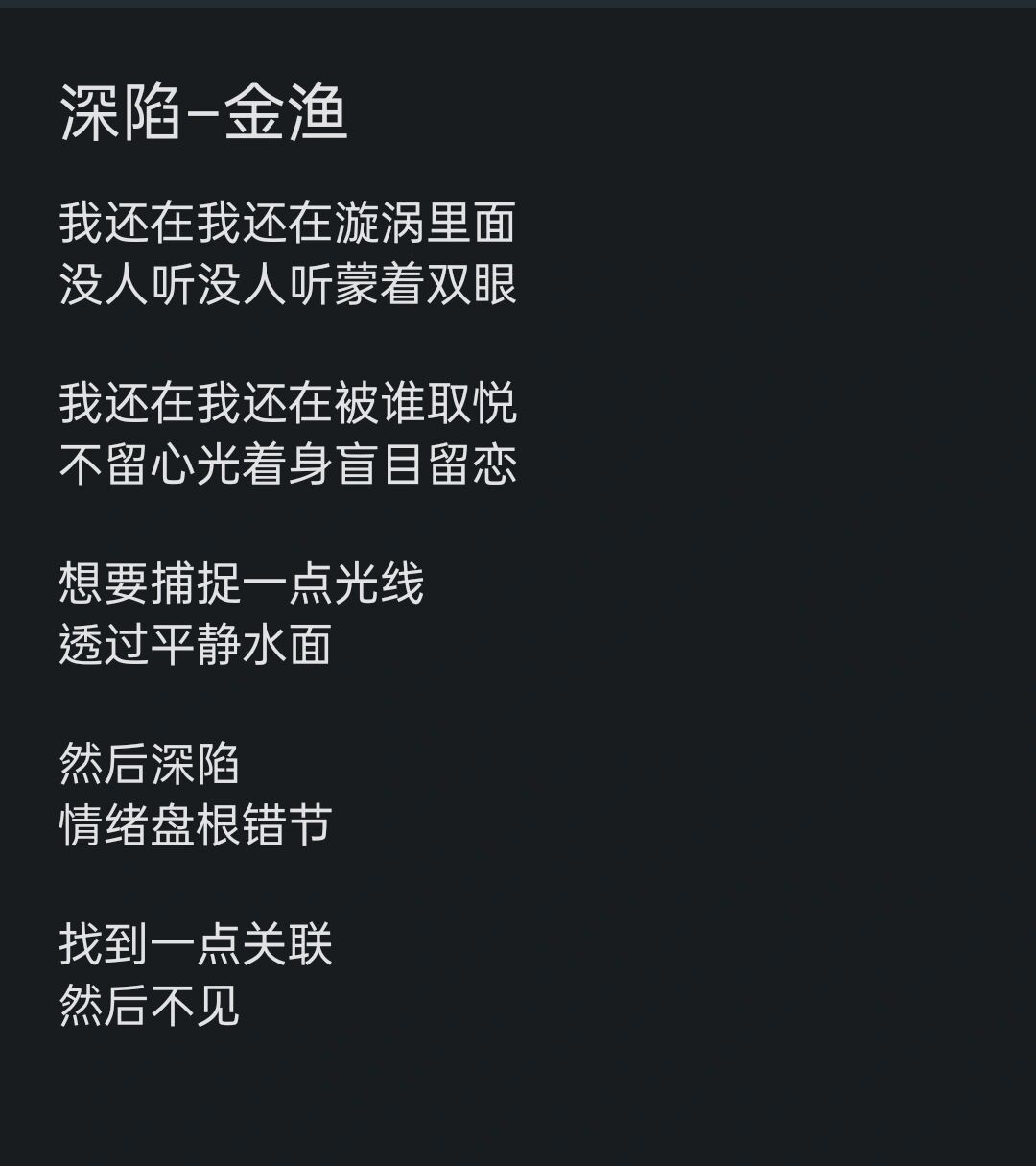 【深陷–金渔】(歌词) 各位晚安 我又来了╰