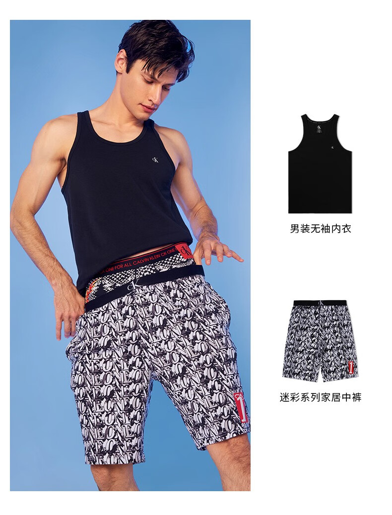 ck内衣春夏男士休闲两件装ckone字母印花舒适居家背心nb2219001黑色xl