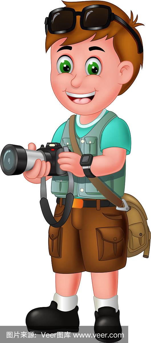 酷的摄影师男孩与黑色相机卡通