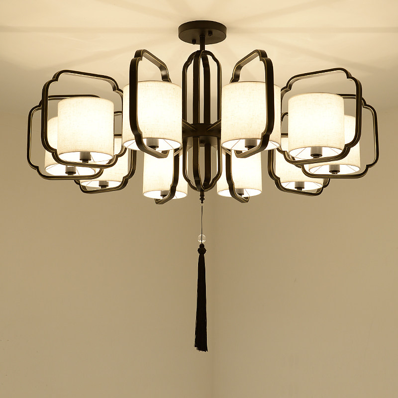 现代新中式吊灯中国风客厅灯中式灯具布艺书房卧室铁艺仿古餐厅灯