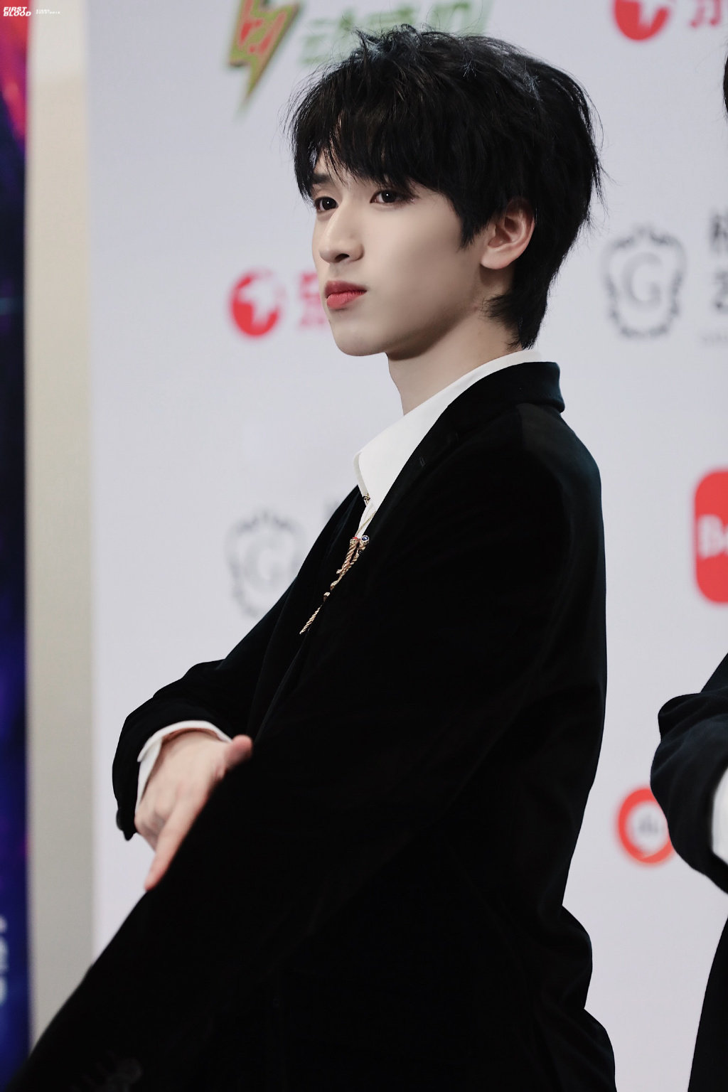 严浩翔东方风云榜红毯饭拍 黑西装搭配黑领带……_高清图集_新浪网