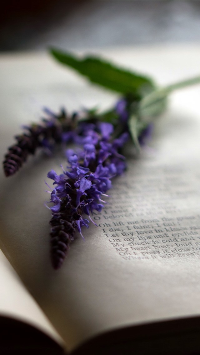 书,紫色的花朵