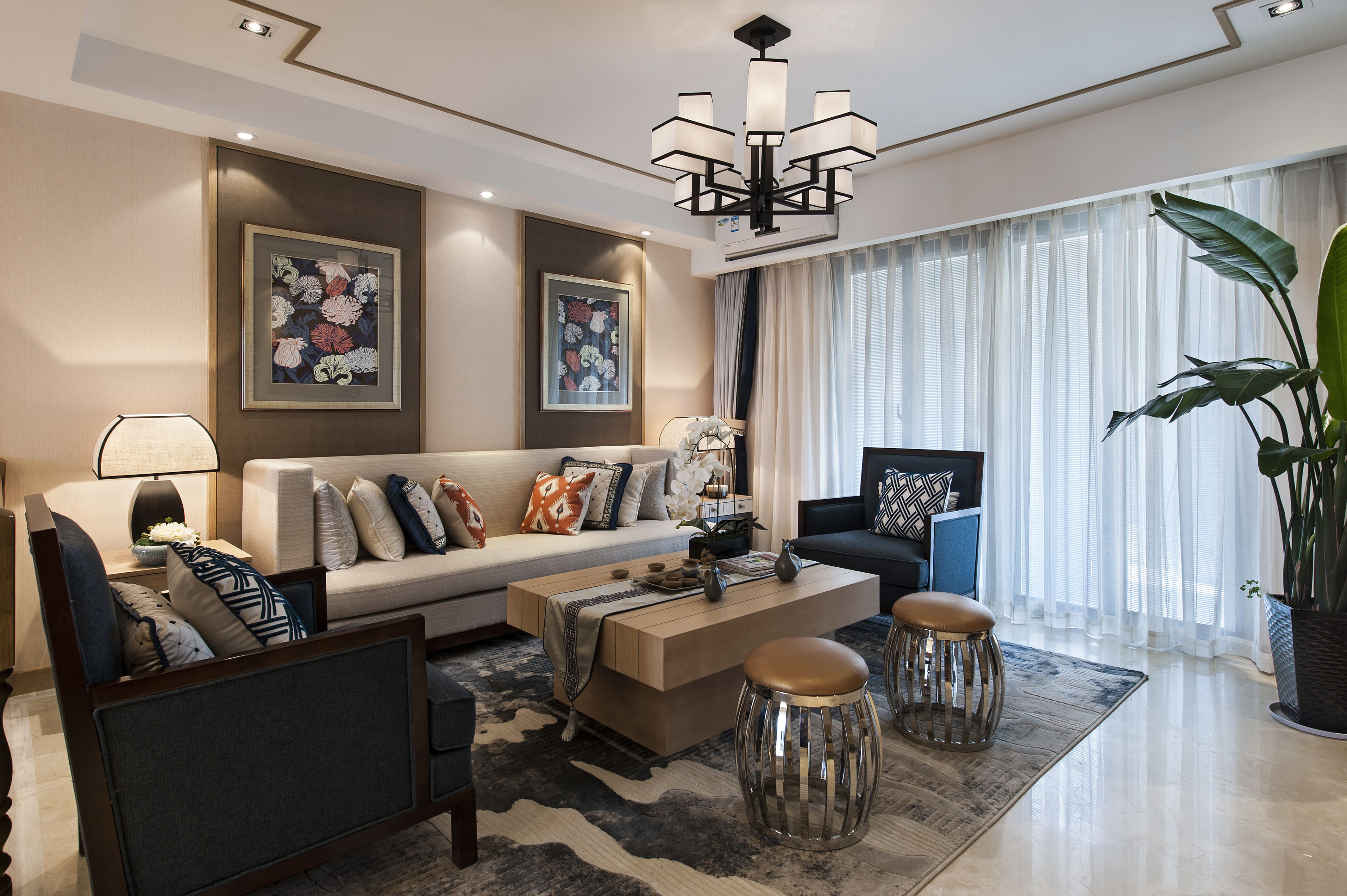 中式四居大户型跃层复式80后小资客厅