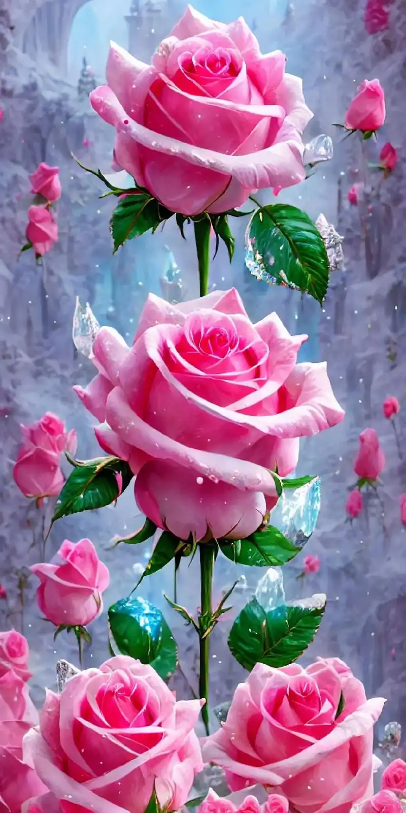 a丨绘画,水晶玫瑰花和水珠玫瑰花,冰晶玫瑰花,可以当壁纸-度小视