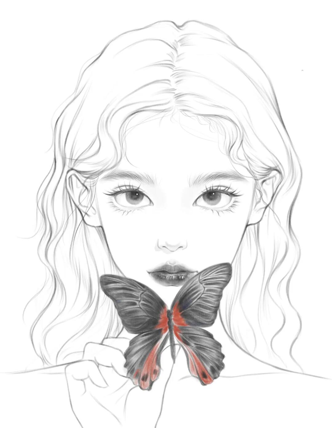 少女线稿练习蝴蝶03少女画画打卡75100