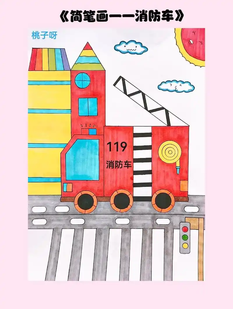酷酷的消防车简笔画来咯,大家一定要多多注意消防安全呀#幼师 - 抖音
