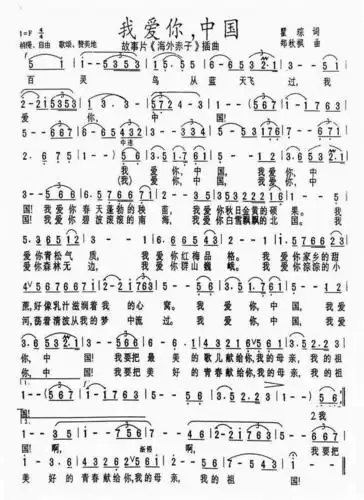 我爱你中国(电影《海外赤子》插曲)简谱-叶佩英演唱-岭南印象制作曲谱
