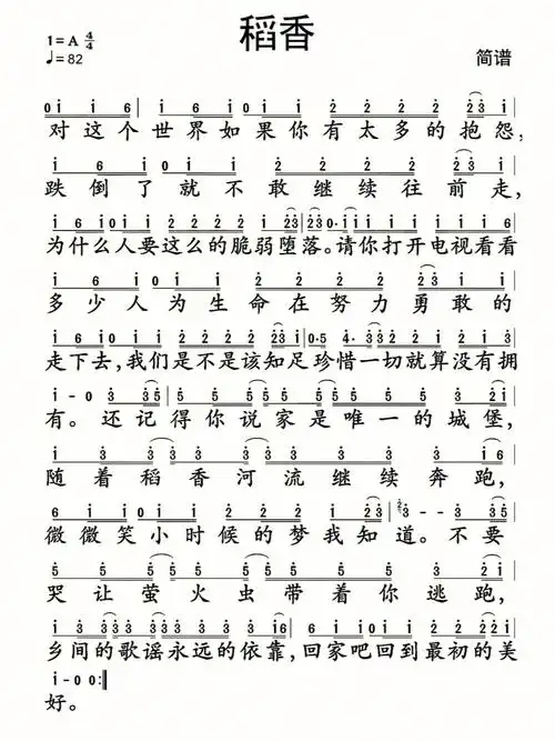 稻香简谱和钢琴谱