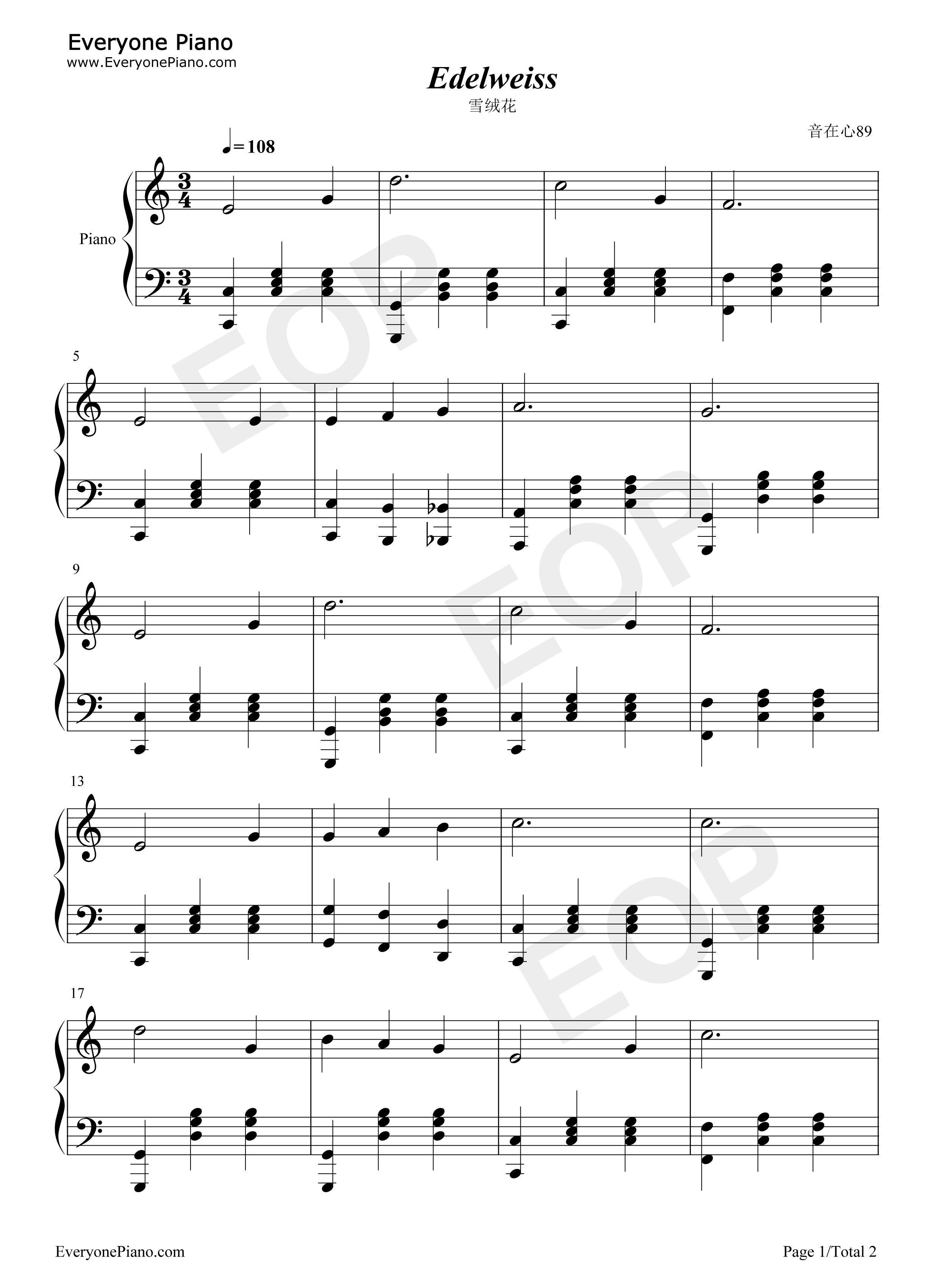 雪绒花-edelweiss五线谱预览1-钢琴谱文件(五线谱,双手简谱,数字谱