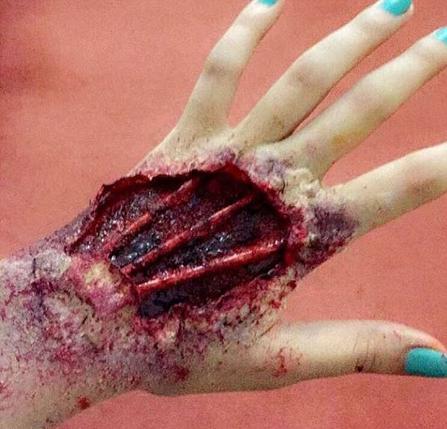 迪拜女生化妆技巧逆天创伤妆逼真恐怖