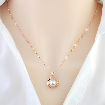 周定福项链女999镀18k玫瑰金珍珠吊坠气质足银送女友情人节礼物 黄