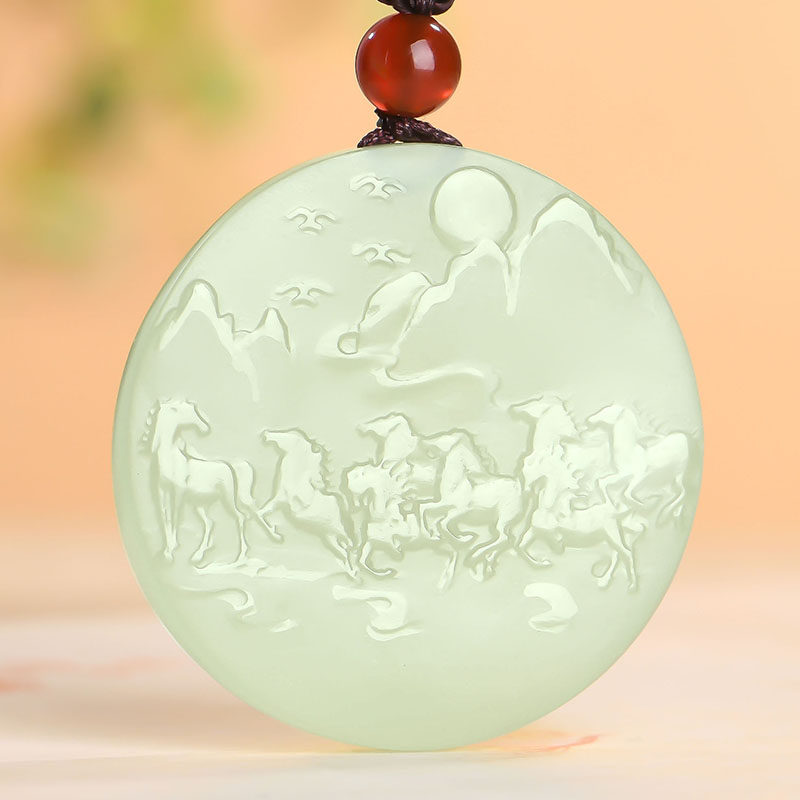 和田玉八骏图玉吊坠 男女士情侣款生肖马玉坠玉石玉挂坠玉牌