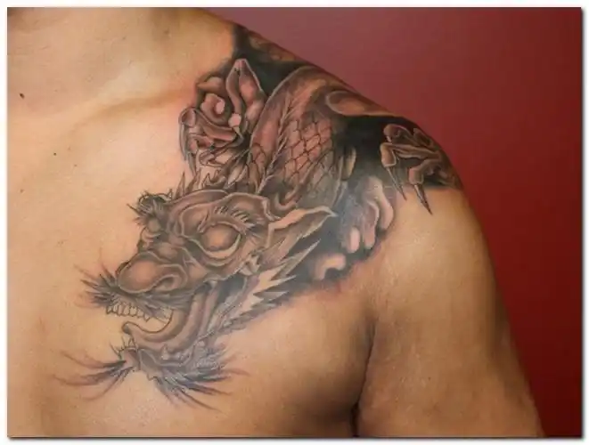过肩龙纹身图片肩部胸部纹身图案