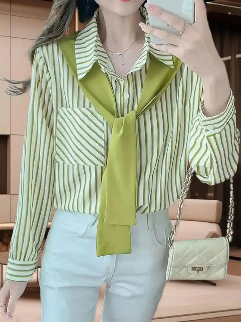 3tg长袖中长女中衬衫条纹竖条衬衣2021polo衬衫