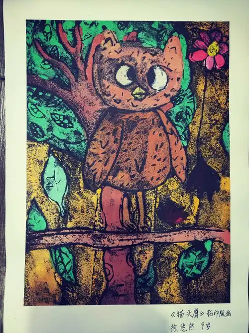 儿童吹塑纸版画作品充满着少儿的智慧,洋溢着童真与稚趣,给人以单纯