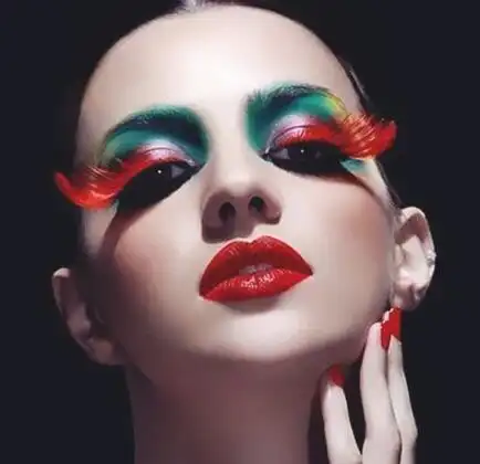 个性时尚的创意彩妆造型蕴含着无限的智慧, 色彩绚丽的眼妆配上火红美
