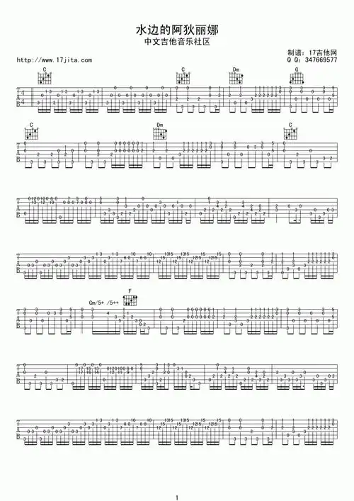 古典吉他名曲 水边的阿狄丽娜吉他谱 曲谱图片第1张