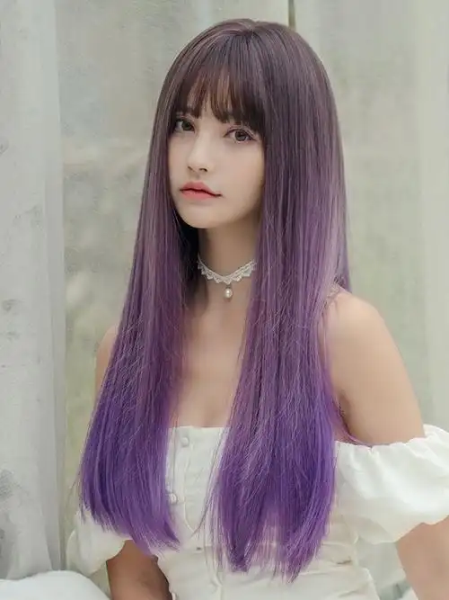 圆脸_假发女长发挑染个性圆脸长直发韩国流行网红发型设计渐变色假发