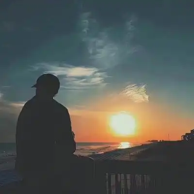 干净好看的优质背影帅气男头 海边日落氛围感很强的背影微信头像_男生