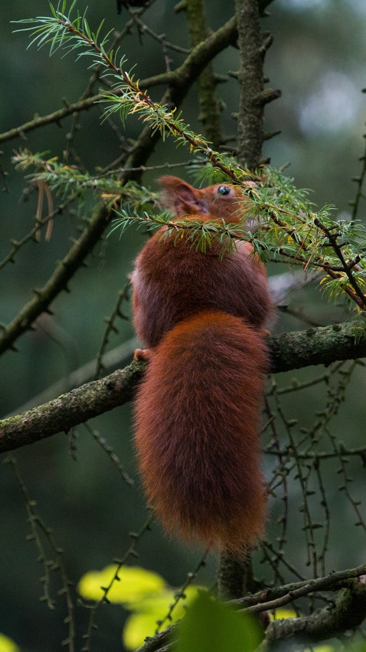 松鼠,尾巴,树 iphone 壁纸