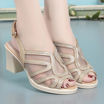意尔康潮牌网纱罗马凉鞋2022年女新款高跟时装中年妇女士夏天鞋子妈妈
