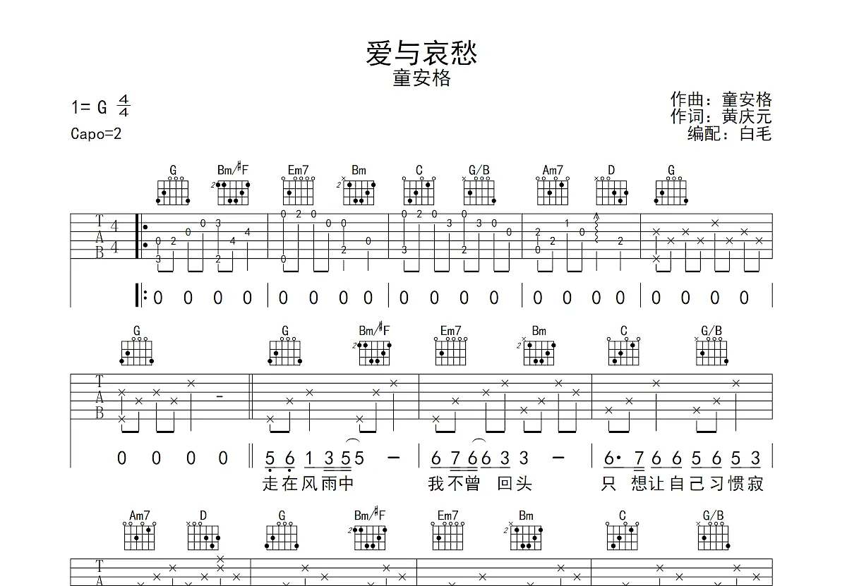 爱与哀愁吉他谱_童安格_g调弹唱88%原版 - 吉他世界