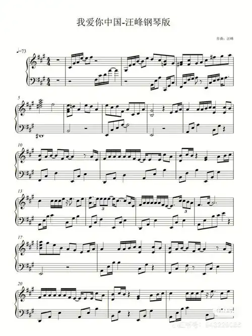 我爱你中国钢琴谱简易版汪峰