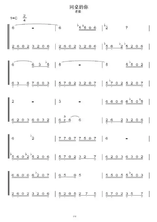老狼 同桌的你 初学者c调简易版 钢琴双手简谱 钢琴简谱 钢琴谱