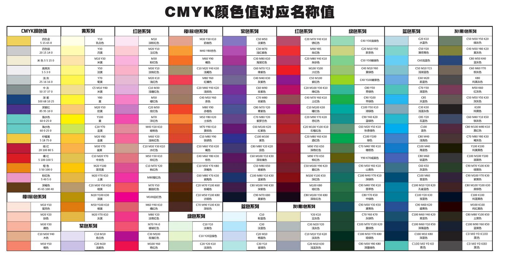 cmyk标准颜色对应名称值