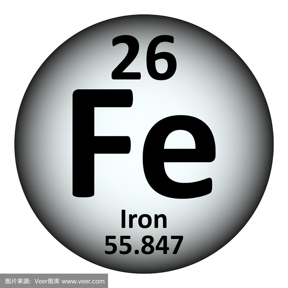 在光滑黄色立方体上显示的周期性表中的铁化学元素符号照片
