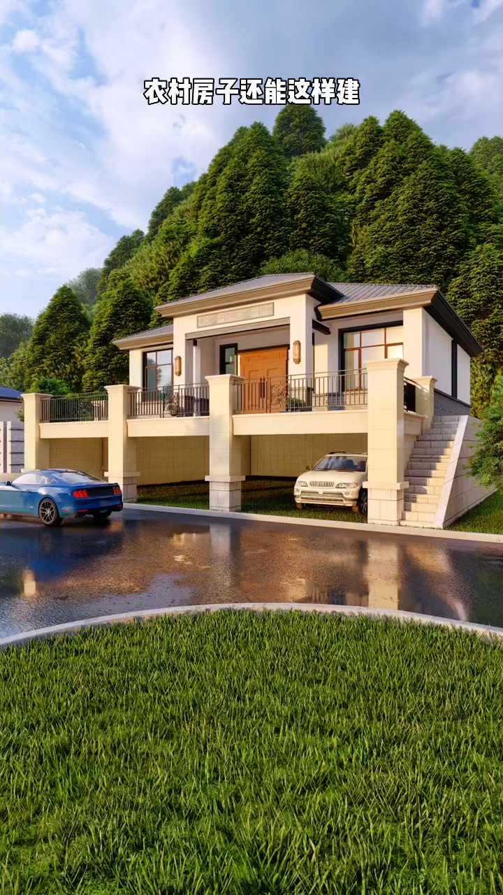农村自建房新中式二层别墅,下面做个架空层,简单实用#农村自建房#-度
