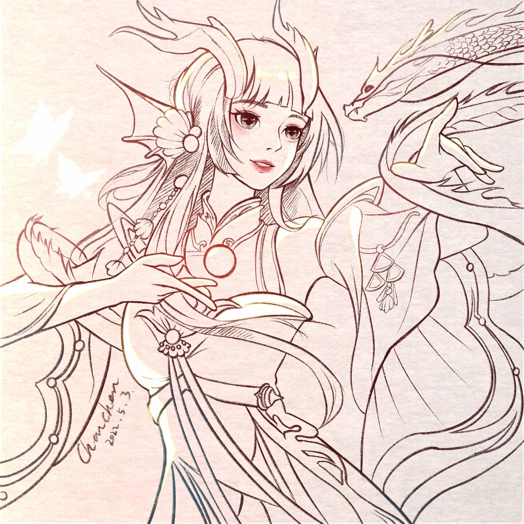 #彩铅 #绘画 #西施fmvp皮肤 游龙清影 - 抖音