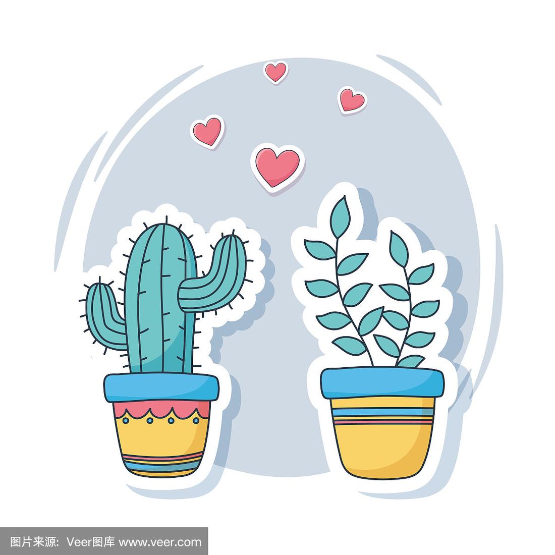 可爱的盆栽植物喜欢卡片,贴纸,补丁,装饰,卡通之类的东西