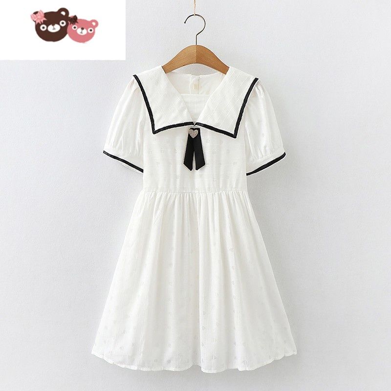 绿彩虹光儿童白色连衣裙学院风女童公主裙大童女装夏装中大童夏季裙子