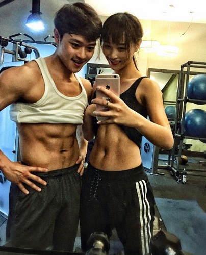 蓝盈莹曹骏超恩爱大秀情侣款马甲线