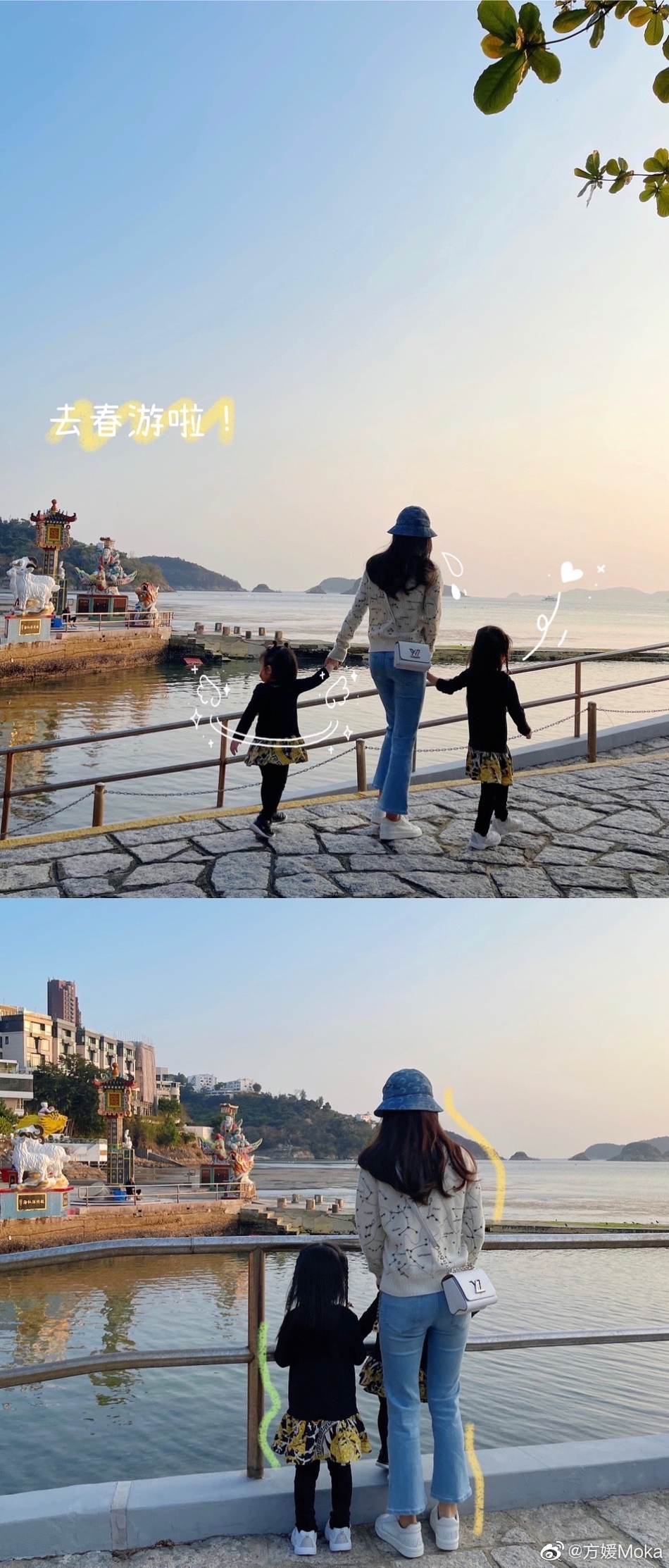 方媛带俩女儿出门春游 晒萌娃背影超可爱