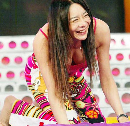 喻可欣吊带装扮仍不顾忌形象