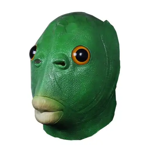 抖音同款绿鱼头乳胶面具万圣节酒吧cosplay整蛊道具