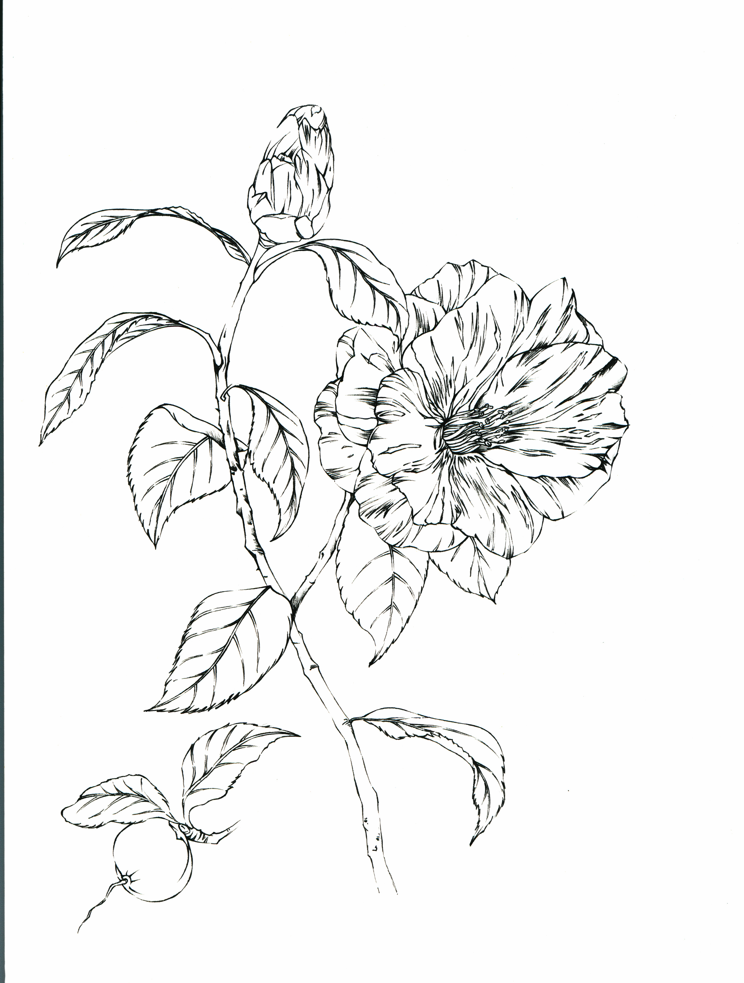 a263工笔画白描底稿茶花白描稿山水人物花鸟动物线描临摹实物画稿