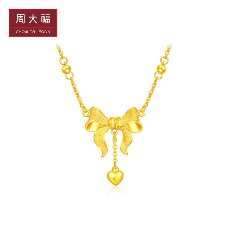 周大福浪漫精致蝴蝶结足金黄金项链女计价工费398元eof497