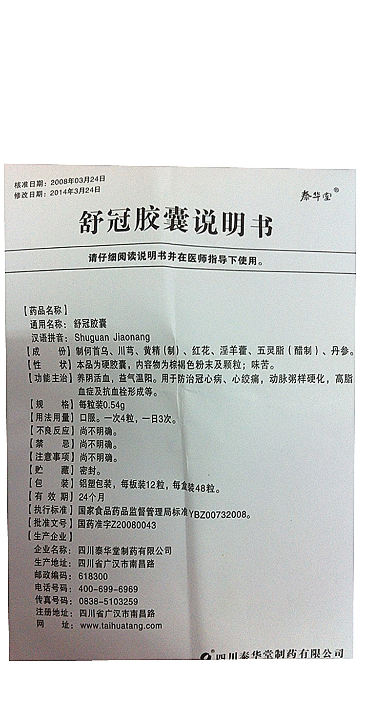 【舒冠胶囊0.54g×48粒/盒】价格_功效与作用_说明书_买药就上药房网