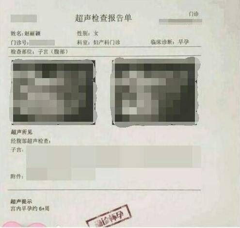 这个时候网上就传出一张b超单,报告单的主人也叫赵丽颖.