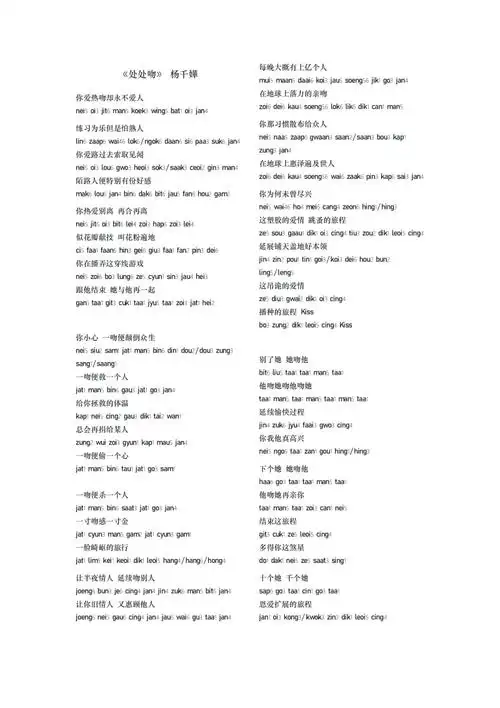 处处吻歌词谐音