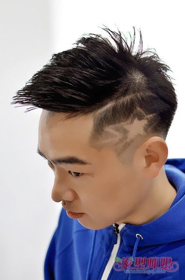 男生短发侧面刻痕闪电图案发型 教你雕刻男生刻痕发式剪法赏析